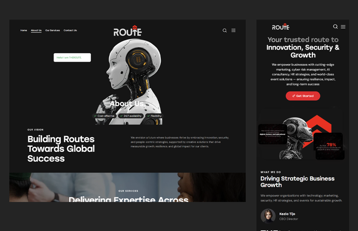 A modern, responsive website for The Route Company, highlighting innovation, security, and growth with seamless navigation, engaging visuals, and user-friendly experience tailored for UAE businesses.